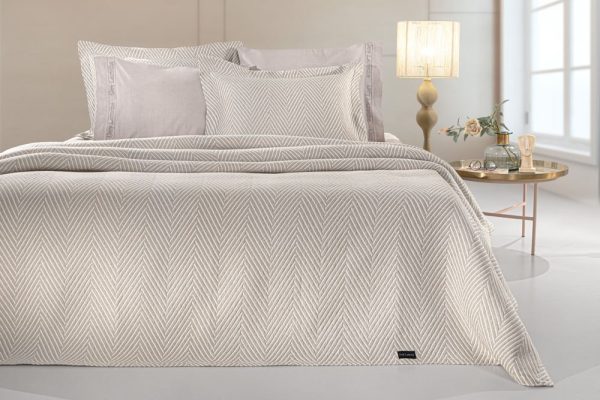 Κουβέρτα – Κάλυμμα κρεβατιού Jacquard με ανάγλυφο μοντέρνο σχέδιο κατασκευασμένη από 60% βαμβάκι και 40% polyster με την υπογραφή της Guy Laroche Paris. Ιδανική επιλογή για τους ανοιξιάτικους και φθινοπωρινούς μήνες. Διάσταση 245×260εκ.