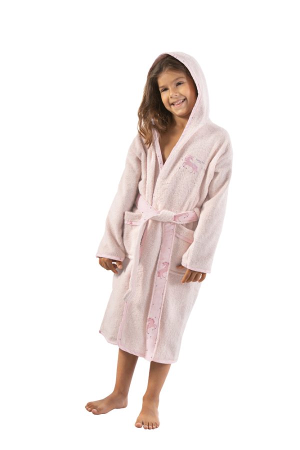 Παιδικό μπουρνούζι κατασκευασμένο από 100% βαμβάκι με την υπογραφή της Saint Clair Paris. Ανακαλύψτε όλη την σειρά “Pinto Pinky” και ολοκληρώστε το παιδικό σετ. Ηλικία 4-6 ετών.