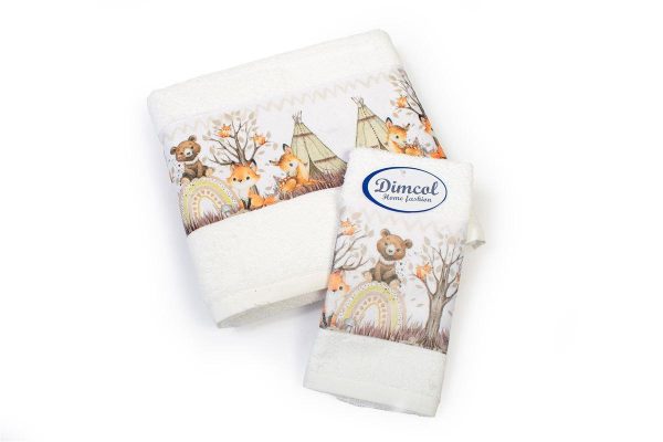 Πετσέτα Σετ 2 τεμ Με Ψηφιακή Εκτύπωση bebe Forest Animals 335 30X50,70X140 White 100% Cotton