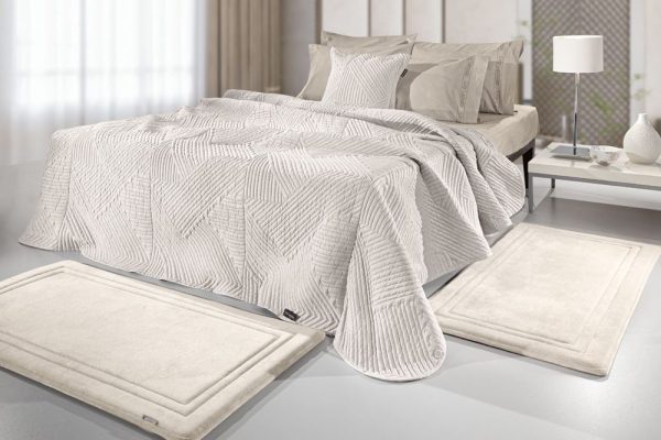 Σετ χαλιά κρεβατοκάμαρας από την εταιρεία Guy Laroche Paris σε μεγάλη ποικιλία χρωμάτων. Είναι κατασκευασμένα από memory foam με σύνθεση 100% μικροΐνες. Το υλικό αυτό προσφέρει απαλό και σταθερό πάτημα, καθώς το χαλί παίρνει το σχήμα του πέλματος και μετά επανέρχεται πάλι στη θέση του. Το σετ αποτελείται από δύο χαλάκια 60×120εκ. και ένα χαλάκι 60×180εκ.
