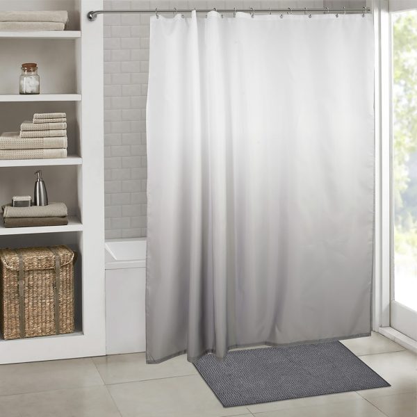 Κουρτίνα μπάνιου της σειράς Nombre από τη νέα Bath Collection της εταιρείας Lino Home. Η κουρτίνα είναι σχεδιασμένη με απόλυτο και μίνιμαλ ύφος καθώς είναι διακοσμημένη με ντεγκραντέ σχέδιο που ξεκινάει από ανοικτό εκρού και καταλήγει σε γκρι. Η σειρά Nombre παρουσιάζει την ιδιαιτερότητα να έχει κρίκους χρωματικά ταιριαστούς με την κουρτίνα. Η νέα μας συλλογή σε κουρτίνες μπάνιου, είναι κατασκευασμένες από 100% αδιάβροχο πολυεστερικό ύφασμα προκειμένου και να στέκεται όμορφα κρεμασμένη στο χώρο αλλά και να προστατεύει το χώρο από τυχόν νερά που πετάγονται κατά τη διάρκεια του μπάνιου.