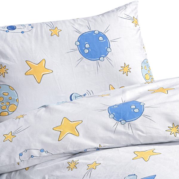 Σετ σεντόνια της σειράς Mondo από την εταιρεία Lino Home! Η σειρά Mondo είναι κατασκευασμένη από υφάσματα 100% βαμβακερά και πυκνότητας 160 κλωστών ανά ίντσα. Το σχέδιό τους είναι εμπνευσμένο από τον μαγικό κόσμο του διαστήματος. Αστροναύτες, διαστημόπλοια, πλανήτες και αστέρια, δημιουργούν μια ατμόσφαιρα περιπέτειας και ανακάλυψης.