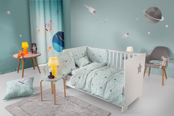 Βρεφικό σετ 3 τεμαχίων κατασκευασμένο από 100% βαμβάκι. Το βρεφικό σετ περιλαμβάνει ένα προστατευτικό πάντα, μια παπλωματοθήκη σε διάσταση 105×145εκ. και μια μαξιλαροθήκη σε διάσταση 30×40εκ.