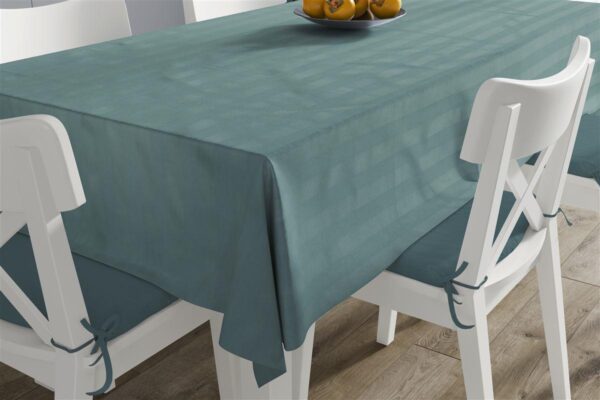 Μονόχρωμο τραπεζομάντηλο διαστάσεων 140X200 cm με ζακάρ ριγέ σχέδιο. Κατασκευασμένο από 100% οικολογικό βαμβάκι με ανεξίτηλα νήματα εξαιρετικής αντοχής ακόμα και στους 90°C για τους πιο απαιτητικούς καταναλωτές.