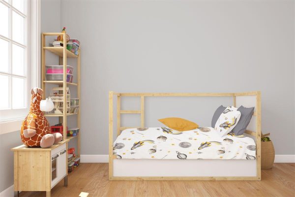 Κατωσέντονο Με Λάστιχο bebe Space Mission 183 0,70X1,40X0,15 White-Grey 100% Cotton