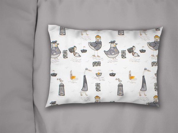 Μαξιλαροθήκη Εμπριμέ kids Seabirds 578 50X70 White-Grey 100% Cotton