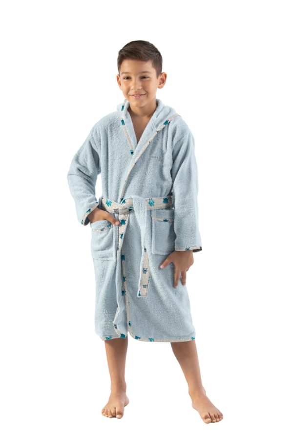 Παιδικό μπουρνούζι κατασκευασμένο από 100% βαμβάκι με την υπογραφή της Saint Clair Paris. Ανακαλύψτε όλη την σειρά “Monsters Blue” και ολοκληρώστε το παιδικό σετ. Ηλικία 4-6 ετών.