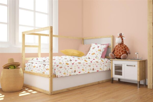 Παπλωματοθήκη Εμπριμέ bebe Forest Animals 571 120X160 White-Pink 100% Cotton