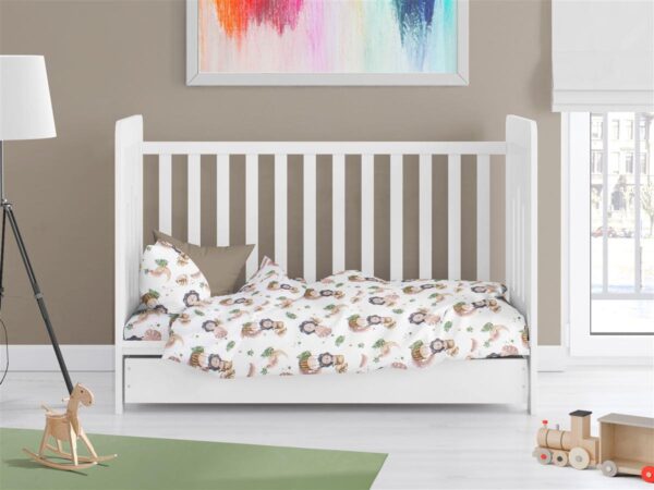 Παπλωματοθήκη βρεφική, εμπριμέ με χαρούμενα χρώματα και μοντέρνες βρεφικές παραστάσεις, για παπλωματάκι κούνιας με φερμουάρ, διαστάσεων 120X160 cm. Κατασκευασμένη από απαλό 100% βαμβακερό ύφασμα 144 κλωστών. Κατασκευάζεται στην Ελλάδα. Συσκευασία Polybag.