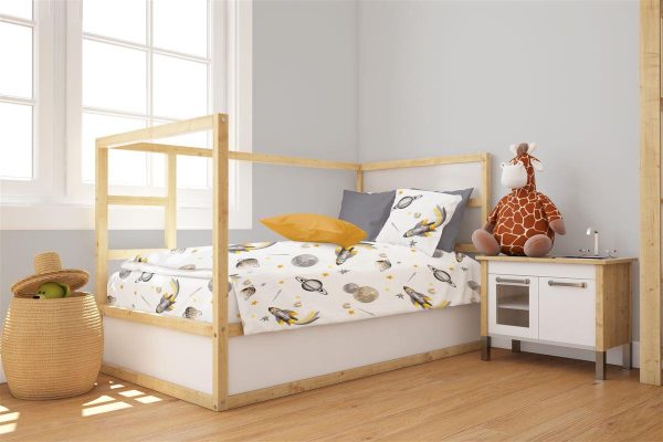 Παπλωματοθήκη Εμπριμέ bebe Space Mission 183 120X160 White-Grey 100% Cotton