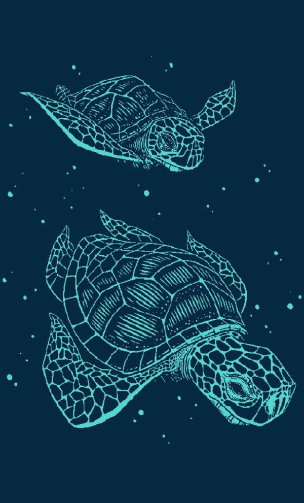 Βελουτέ πετσέτα θαλάσσης, διαστάσεων 87X165 cm, με ζακάρ σχέδιο διπλής όψεως που απεικονίζει χελώνες, σε navy blue χρώμα. Κατασκευασμένη από 100% αιγυπτιακό βαμβάκι, υψηλής απαλότητας και απορροφητικότας, βάρους 420 gr/m². Συσκευασία Polybag.