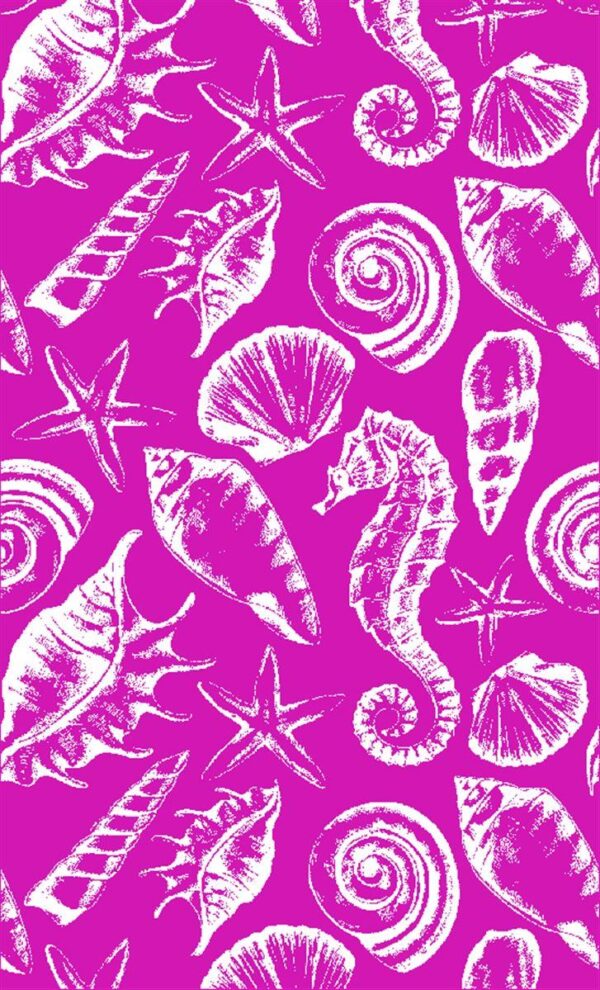 Βελουτέ πετσέτα θαλάσσης, διαστάσεων 87X165 cm, με ζακάρ σχέδιο διπλής όψεως που απεικονίζει διάφορα κοχύλια και ιππόκαμπους, σε φουξ χρώμα. Κατασκευασμένη από 100% αιγυπτιακό βαμβάκι, υψηλής απαλότητας και απορροφητικότας, βάρους 420 gr/m². Συσκευασία Polybag.