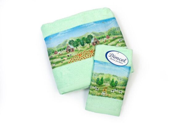 Πετσέτα Σετ 2 τεμ Με Ψηφιακή Εκτύπωση bebe Farm 342 30X50,70X140 Mint 100% Cotton