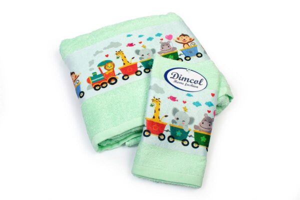 Πετσέτα Σετ 2 τεμ Με Ψηφιακή Εκτύπωση bebe Train 348 30X50,70X140 Mint 100% Cotton