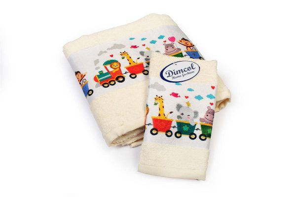 Πετσέτα Σετ 2 τεμ Με Ψηφιακή Εκτύπωση bebe Train 347 30X50,70X140 Ecru 100% Cotton