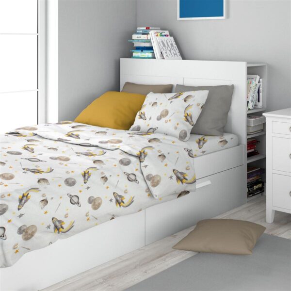Σεντόνια Εμπριμέ Σετ 2 τεμ kids Space Mission 183 160X240 White-Grey 100% Cotton