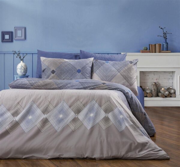 Σεντόνια Εμπριμέ Σετ 4 τεμ Καλλιρόη 604 220X240 Grey-Blue 70/30 Cott/Pol