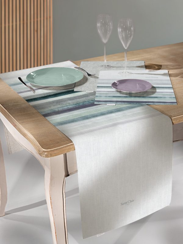 Αλέκιαστη τραβέρσα δύο όψεων της Saint Clair Paris. Σε γκρι απόχρωση από τη μία μεριά και μοντέρνο σχέδιο από την άλλη. Κατασκευασμένη από 100% πολυεστέρα.