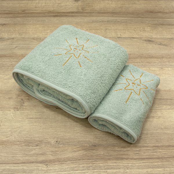 To σετ περιλαμβάνει μία πετσέτα προσώπου 40×60 και μία πετσέτα σώματος 75×140.